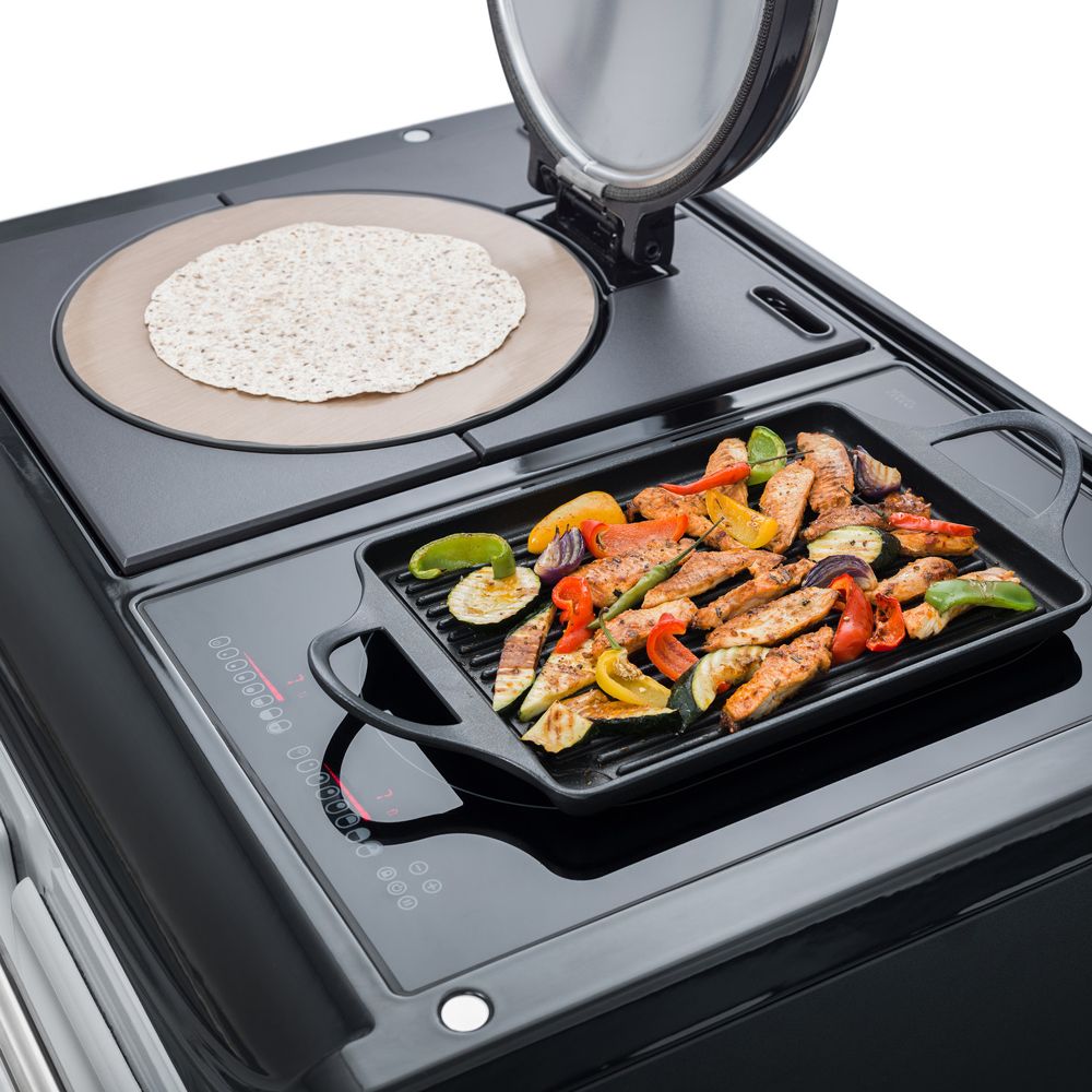 The griddle is suitable for use on all cookers including induction and performs well on hotplates and in the AGA ovens.