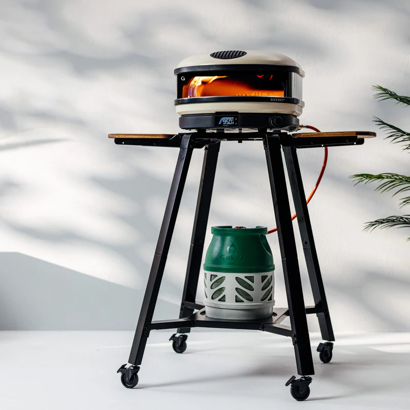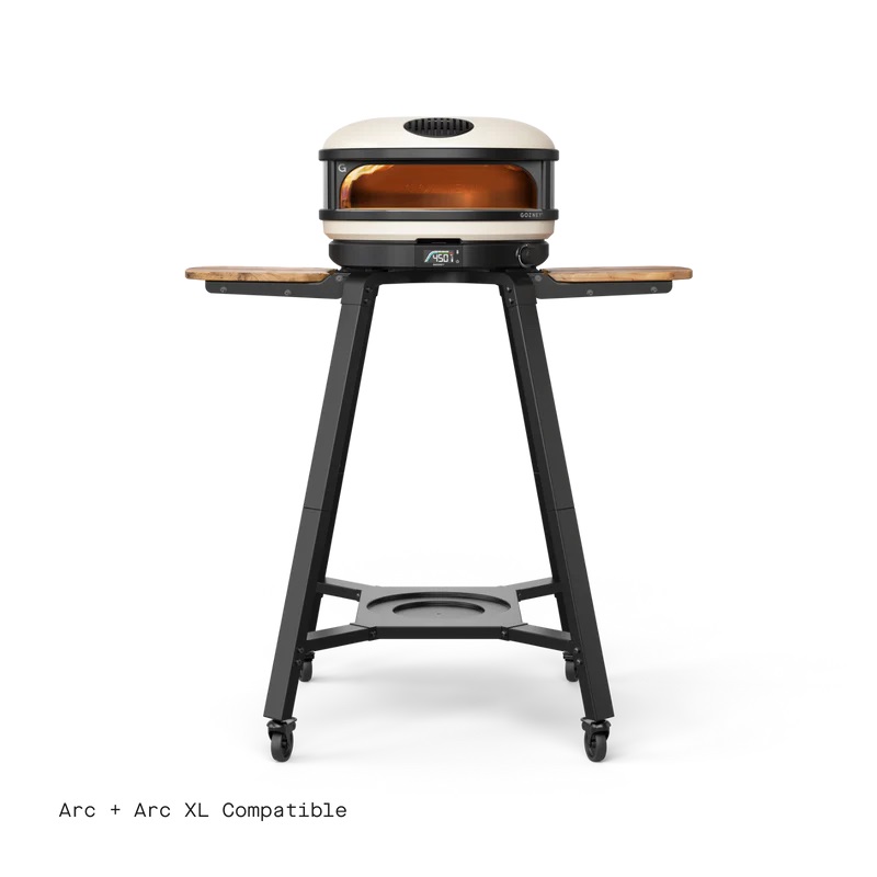 Designed with cooking on Arc or Arc XL in mind, your oven securely connects to the stand with an easy turn fastener and sits at the perfect height for cooking. The durable wooden wings and hanging hooks are built in for convenience while the four large wheels make it easy to move your oven around your outdoor space.