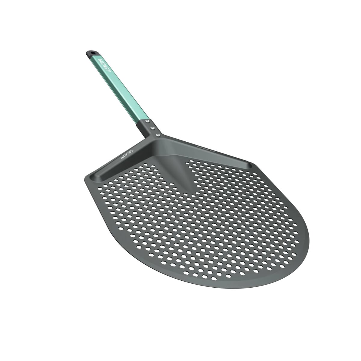 The Pro Placement Peel is designed to offer chefs a superior lightweight and optimized pizza experience, developed with and for the world’s best pizza makers. Designed with input from elite Gozney pizza chefs, the Pro is tuned specifically to the needs of pizza-makers who want to create their best pizza. A fully perforated blade allows maximum flour dispersion, completely minimizing the chance of excess flour accumulating on the bottom of the pizza and burning during your cook. The blade’s rounded shape helps you shape a perfect circle every time. The chiselled shape of the aluminium handle has angled sides for a confident grip and a curved underside so the peel slides freely through the hand when launching pizza. The fully aluminium construction provides lightweight comfort and overall responsiveness, creating a seamless extension of the chef’s arm – giving you the edge to reach your pizza-creating potential.