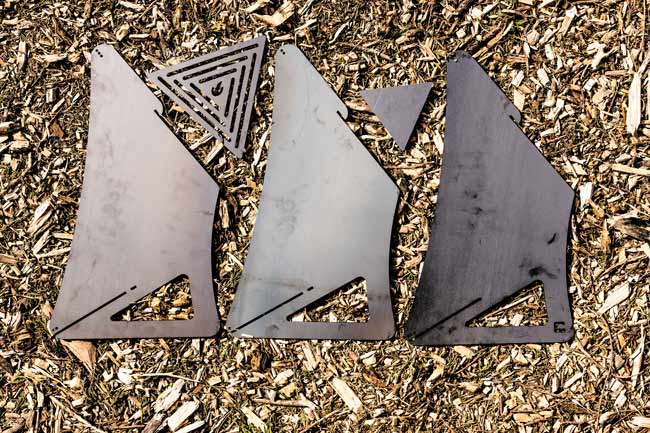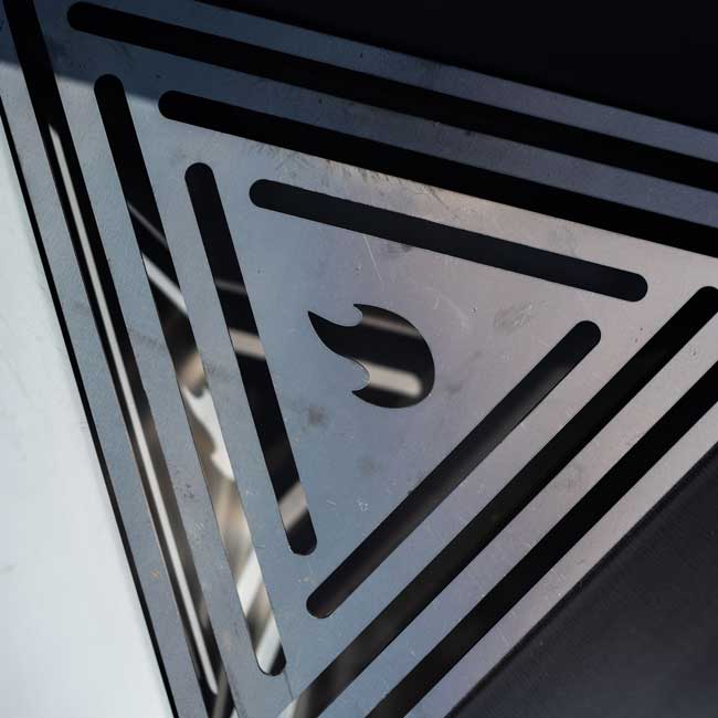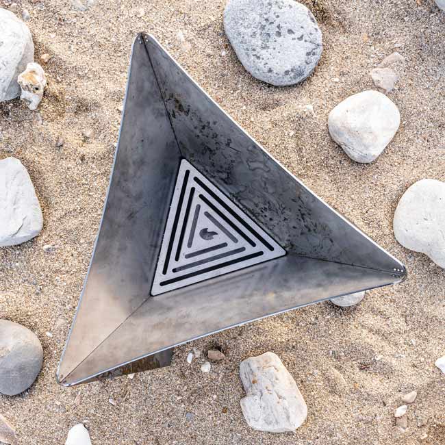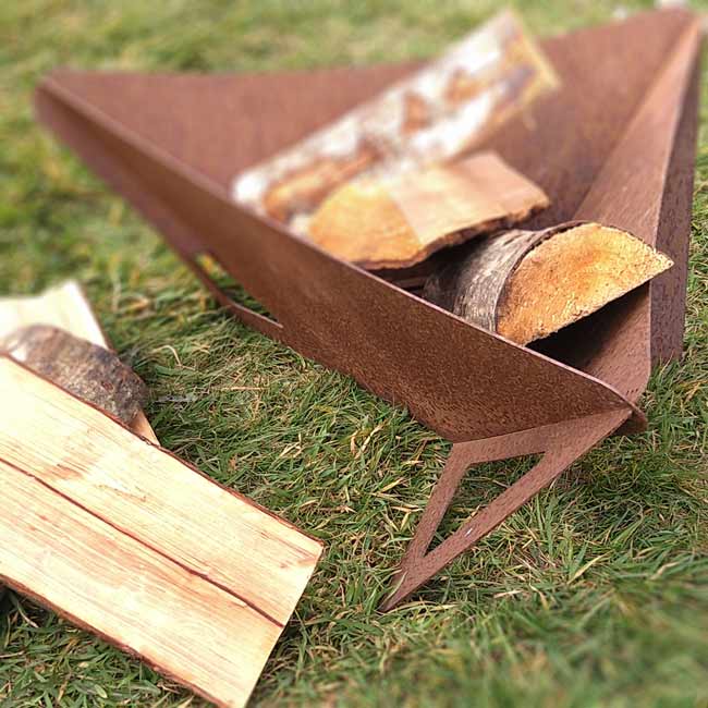 Ideal for garden parties and picnics. Burns wood logs. Made from 4mm steel. Can be dismantled and stored away, or left outdoors to acquire an oxidised patina.