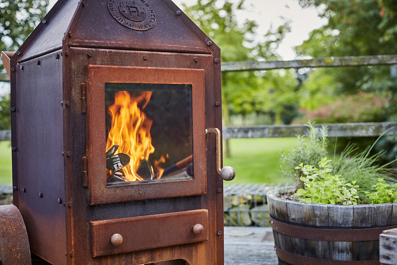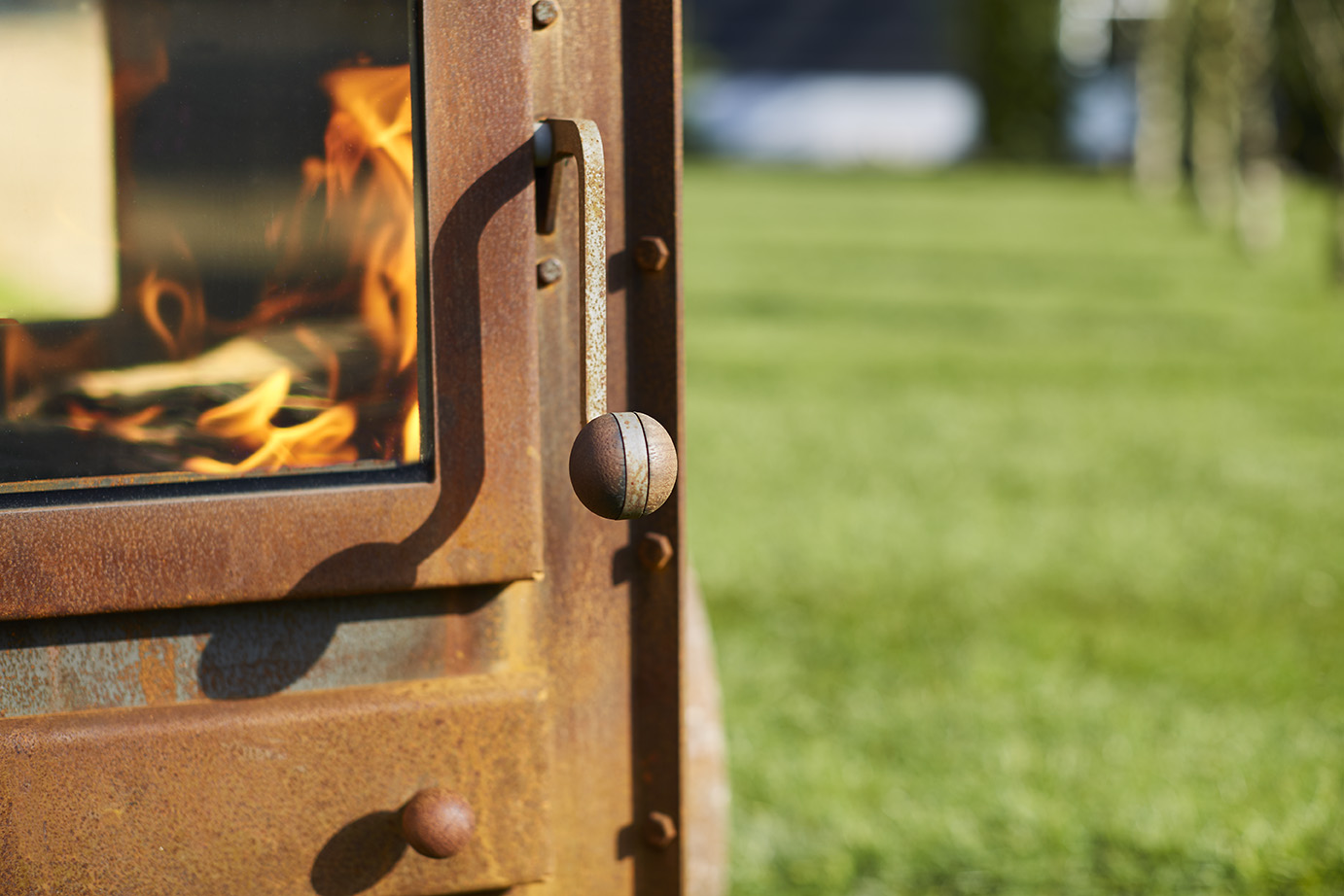 The Bijuga is a robust CorTen steel outdoor stove. The striking timeless design combines tight