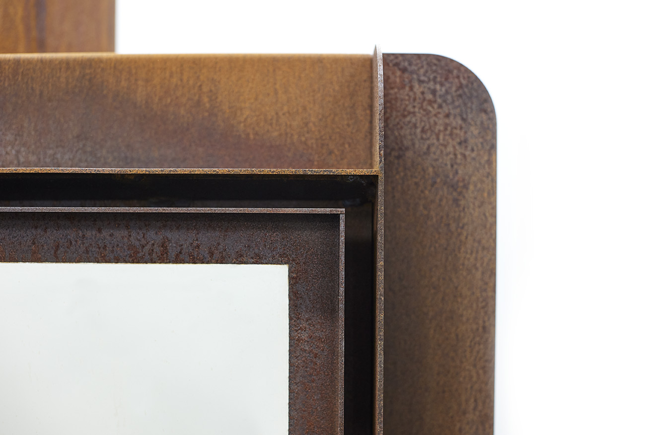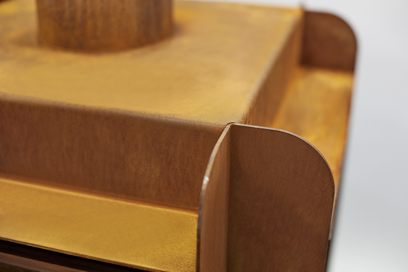 Roderick used clean and straight lines for the design. Made of 3mm CorTen steel.