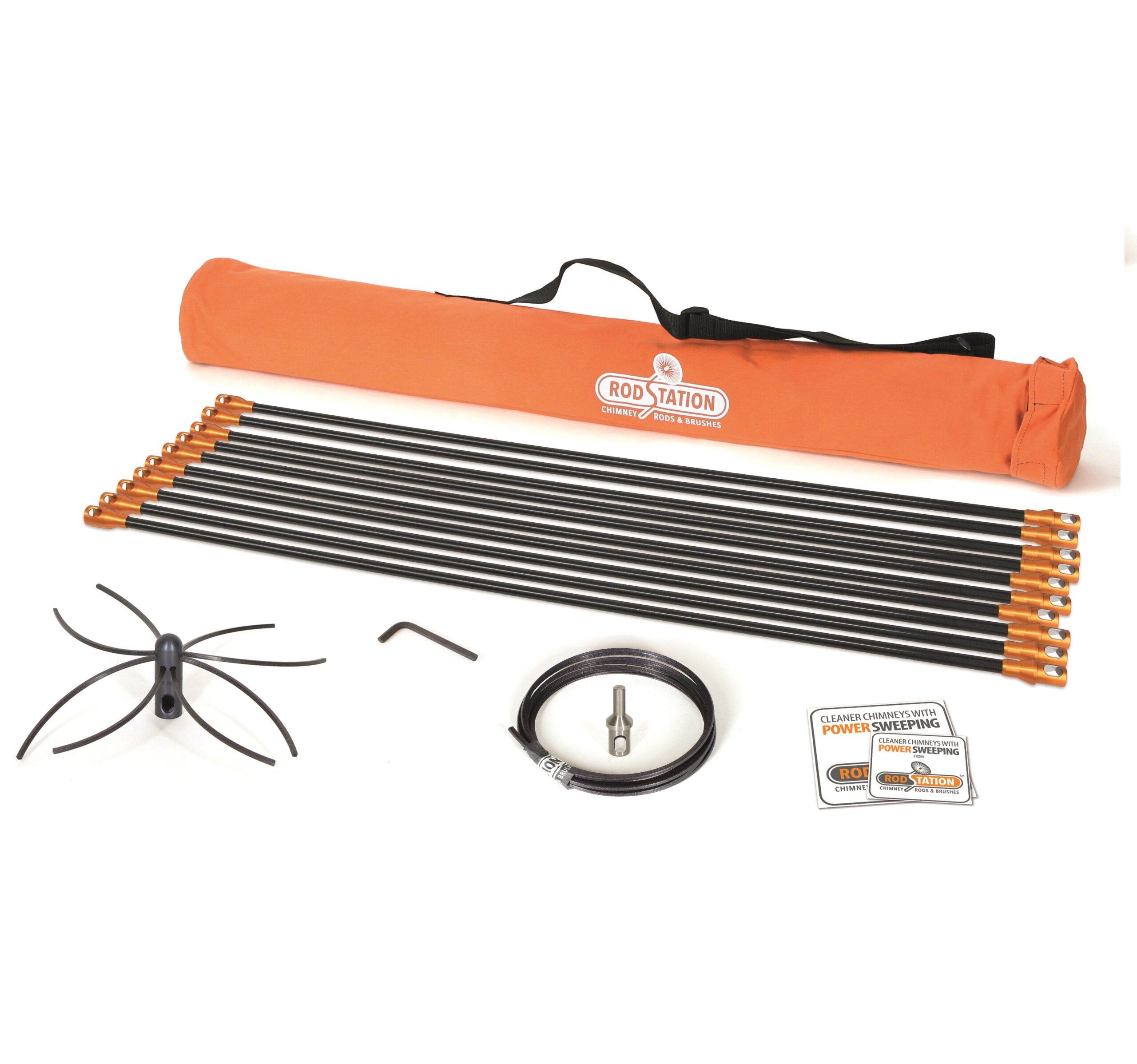 Rodstations Liner Power sweeping Kit is an ideal choice for cleaning of flexible liner and insulated chimney systems. The rods are 12mm in diameter with great flexibility and strength. The rods are made from lightweight co-polymer and aluminium ferrules which ensures a lightweight rod leaving less stress within the chimney and on the drill.