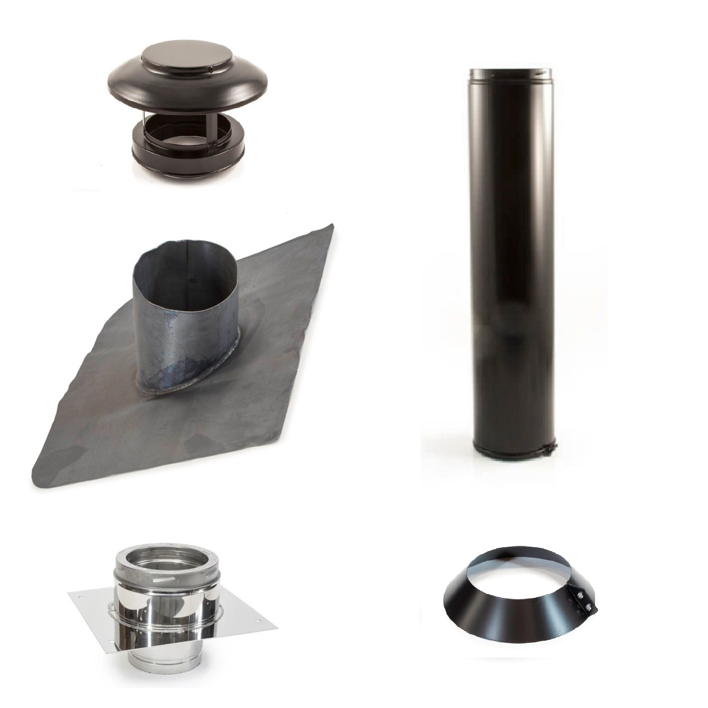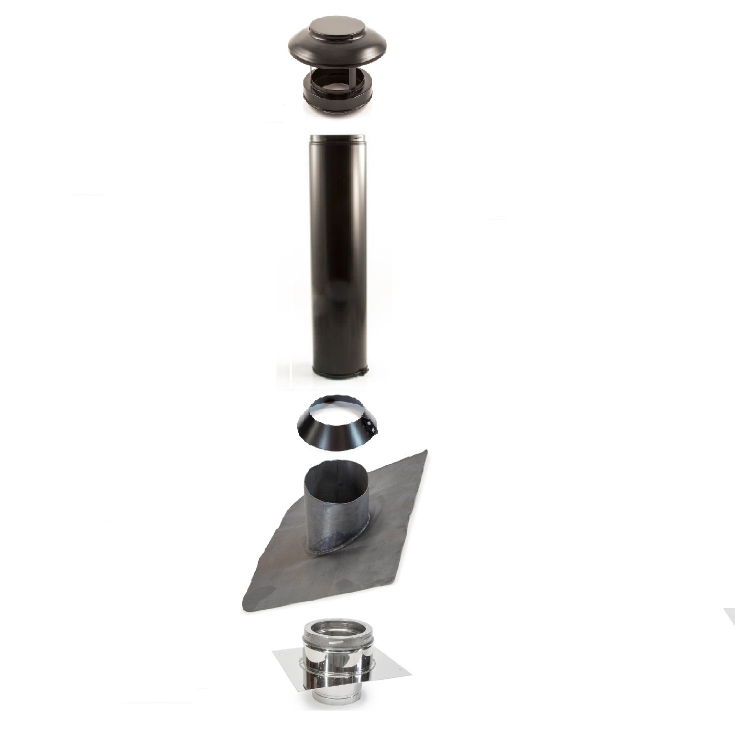 Chimney Roof Kit – Flexible Liner to Black Twin Wall (125mm internal, 180mm external)