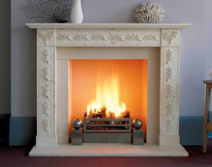The Coral was inspired by a coral pattern from fabric weavers in Northern India. Bianco Avorio limestone with rough texture and beautiful fossils is the perfect material for translating this inspiration into sculptural form.