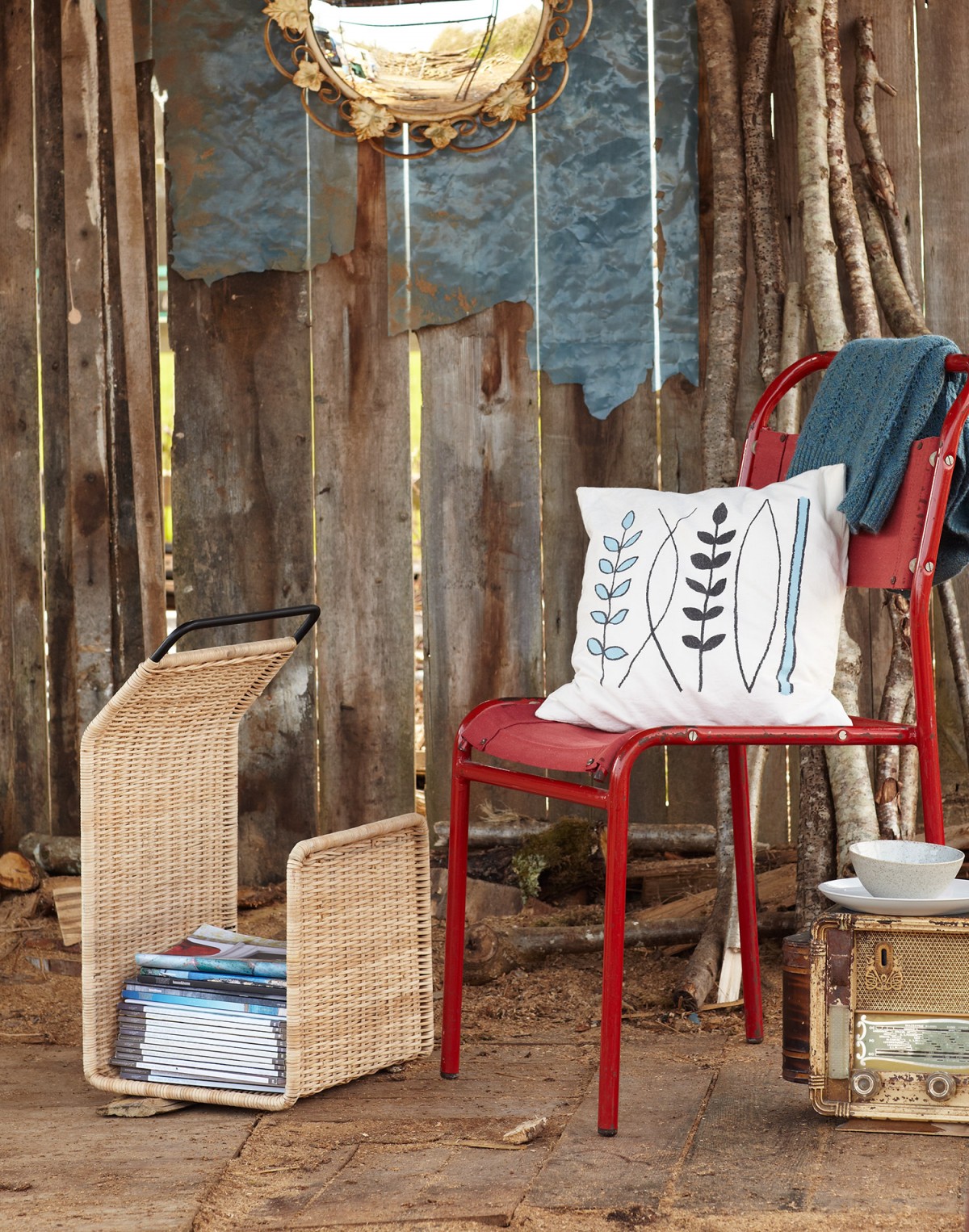 | Material | Hand crafted steel with woven rattan |