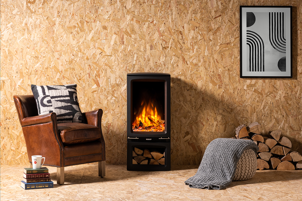 The Vogue Midi T electric is offered as a plinth-mounted stove or in Midline log store versions, which can be filled with logs to enhance the wood burning aesthetic. Alternatively, the wall-hung version creates a floating installation for a strikingly modern look.