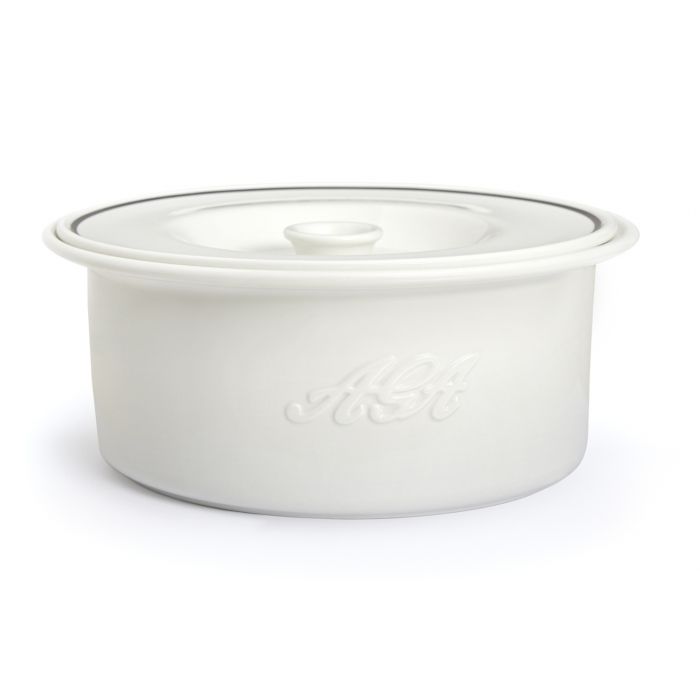 Beautiful classic white style with clever wide lip and flat lid. Easy to handle with oven gloves and gauntlets. Lightweight and easy to clean.