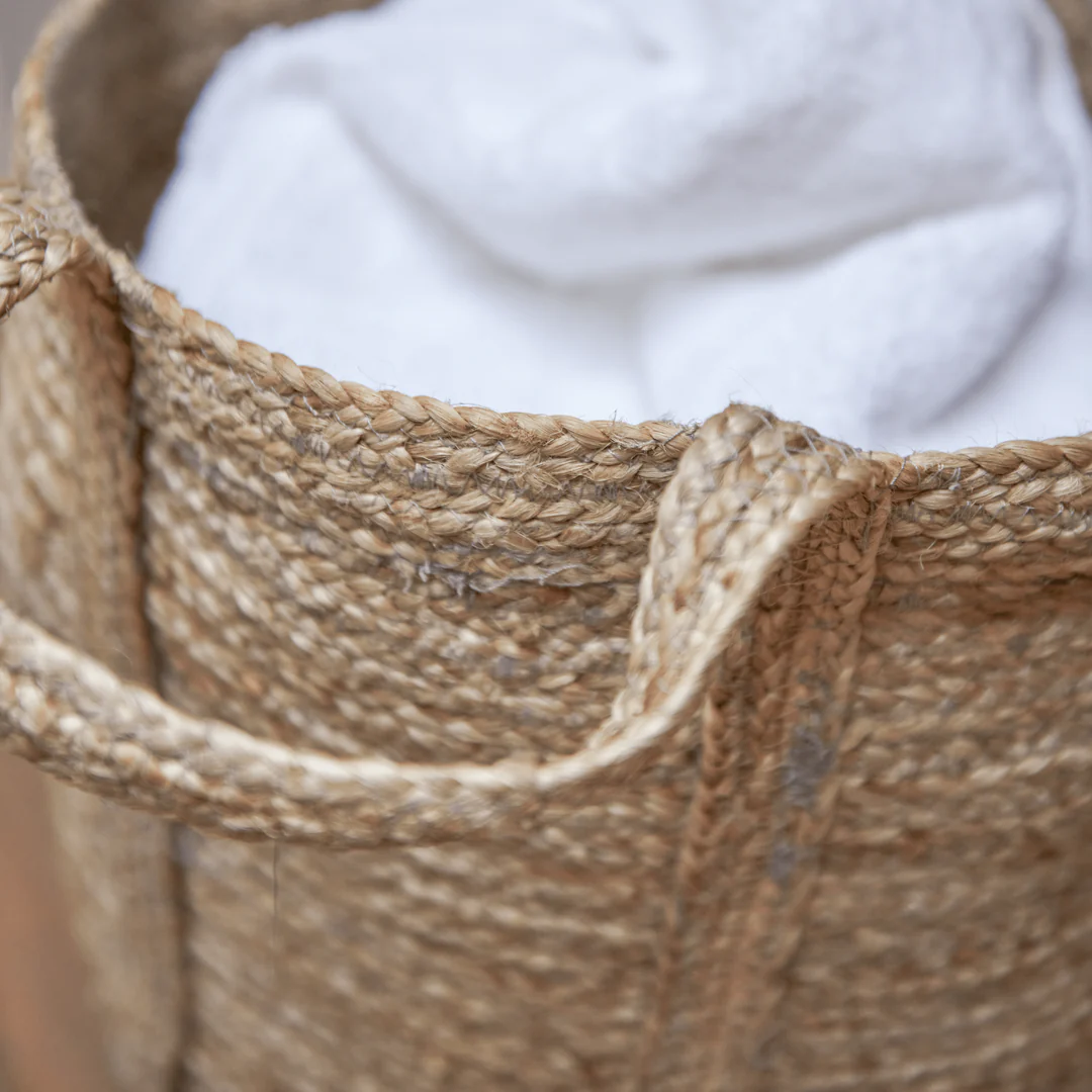 This laundry basket is handmade from natural jute, with a decorative braided weave and plaited carrying handles. It’s a relaxed design, but the tight weave and reinforced base ensures it maintains its shape. Use it to keep laundry in order, all while bringing the artisanal texture of jute to the room.