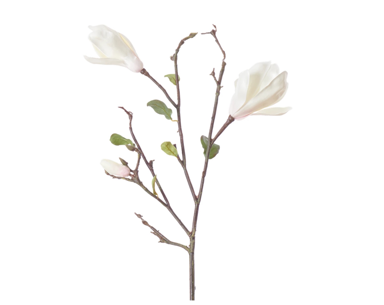 This life-like Magnolia spray is based on a deciduous magnolia. It’s so dramatic because it blooms in spring before the leaves are made. Each petal on these life-like flowers are veined and shaped individually, so no two look the same, and there’s a bendable wire inside – all of which makes it truer to life.