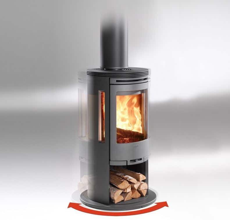 Light and heat through the whole house. With a Contura stove mounted on a turntable the fire becomes visible everywhere. Simply turning it directs the heat and firelight your way. So now Contura can spread the heat and light both for the dinner table and the sofa area. The rotation angle and speed are adjustable and the stove can be connected to outdoor air if desired.