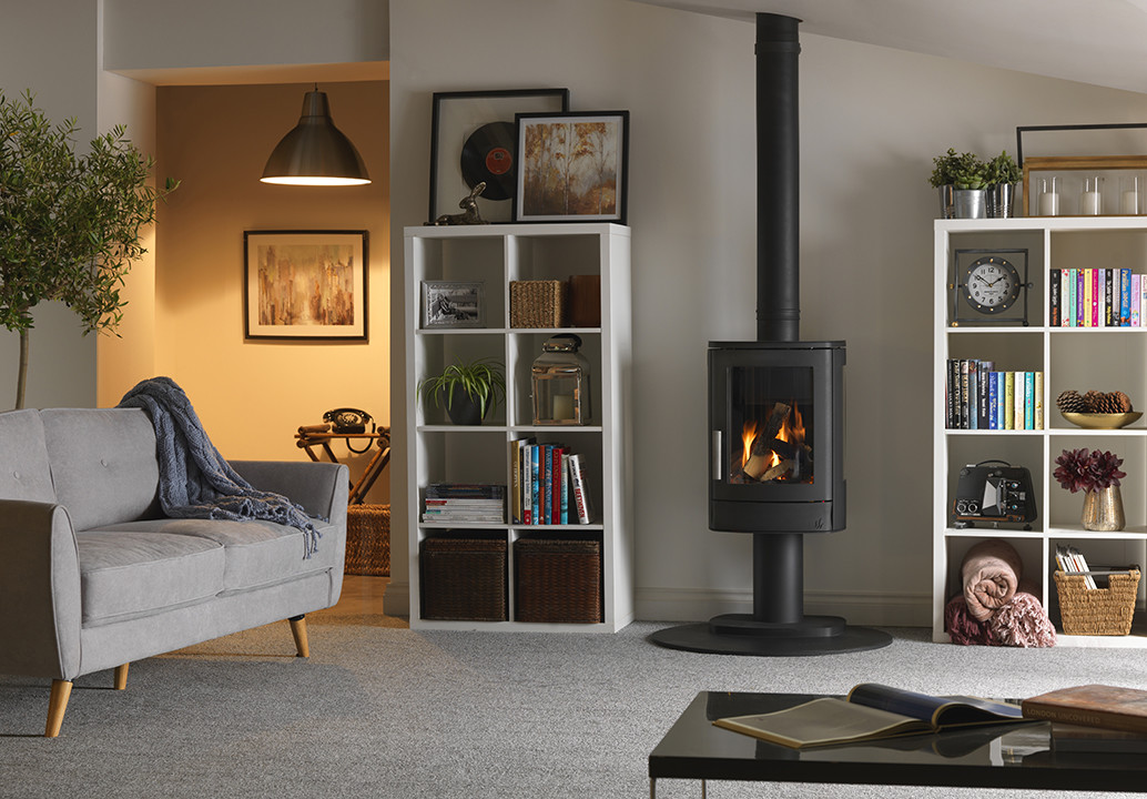 Being balanced flue, the stove is room sealed which means it takes all of it’s air required for combustion from the outside. This is done via the balanced flue kit where the combustion air is drawn through the outer pipe and the flue gasses are expelled through the inner pipe.