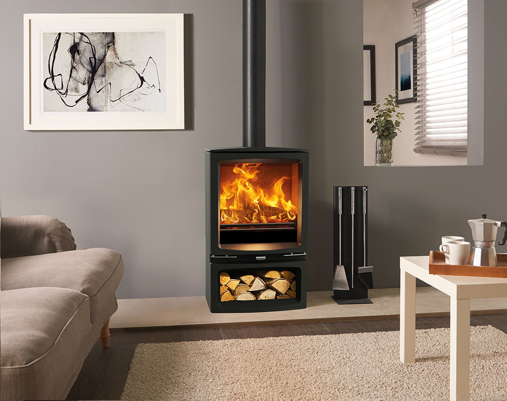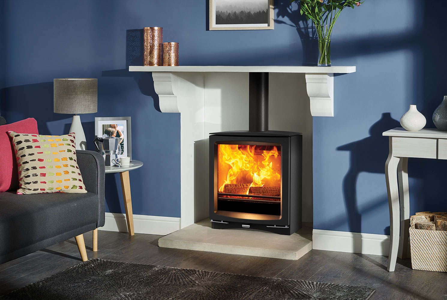 Presenting a stunning view of the flames, Vogue models feature a signature bevelled cast iron door with an expansive glass viewing window, kept clear by the powerful Airwash system that also aids the range’s high levels of combustion efficiency.