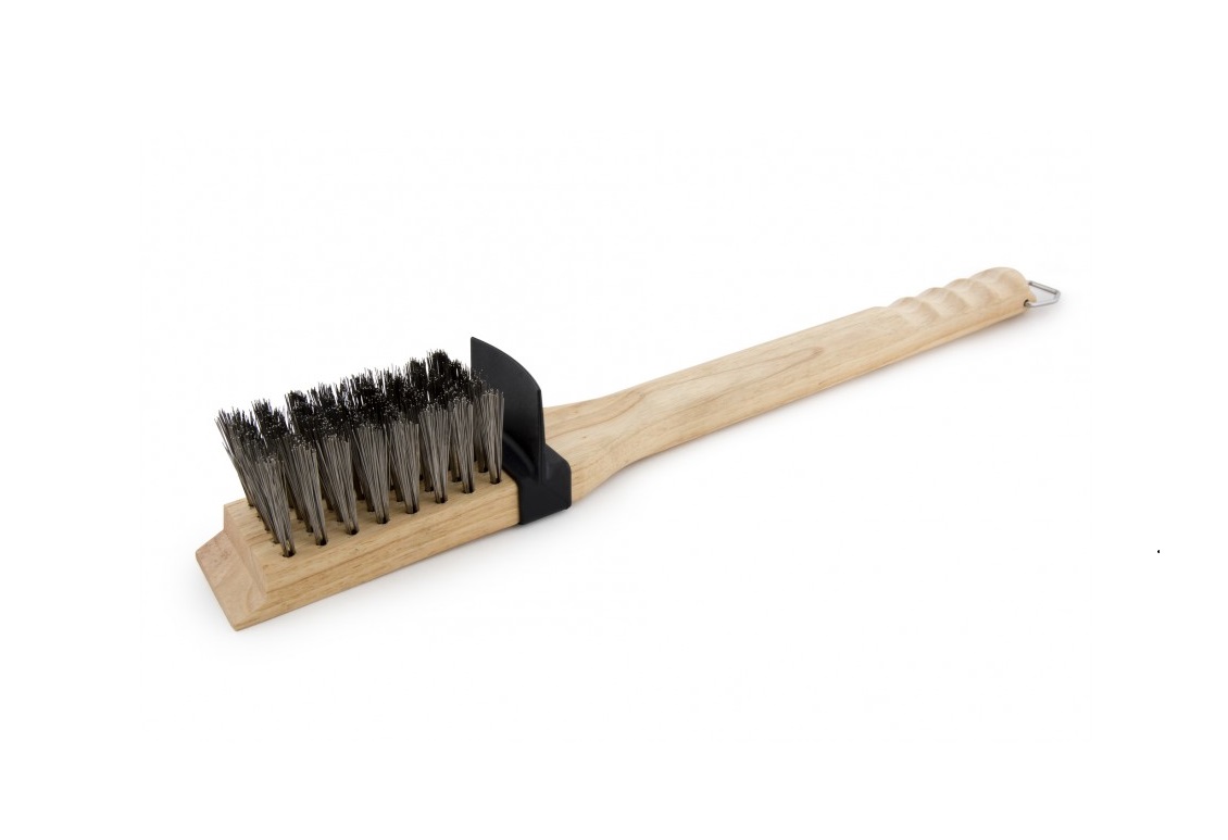 The Broil King wood grill brush has extra heavy and extra long stainless steel bristles to give your grills that deep clean after each cook. It also comes with a patented grime guard flap and integrated wood scraper.